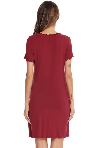 Plus Size Pocketed V-Neck Short Sleeve Lounge Dress